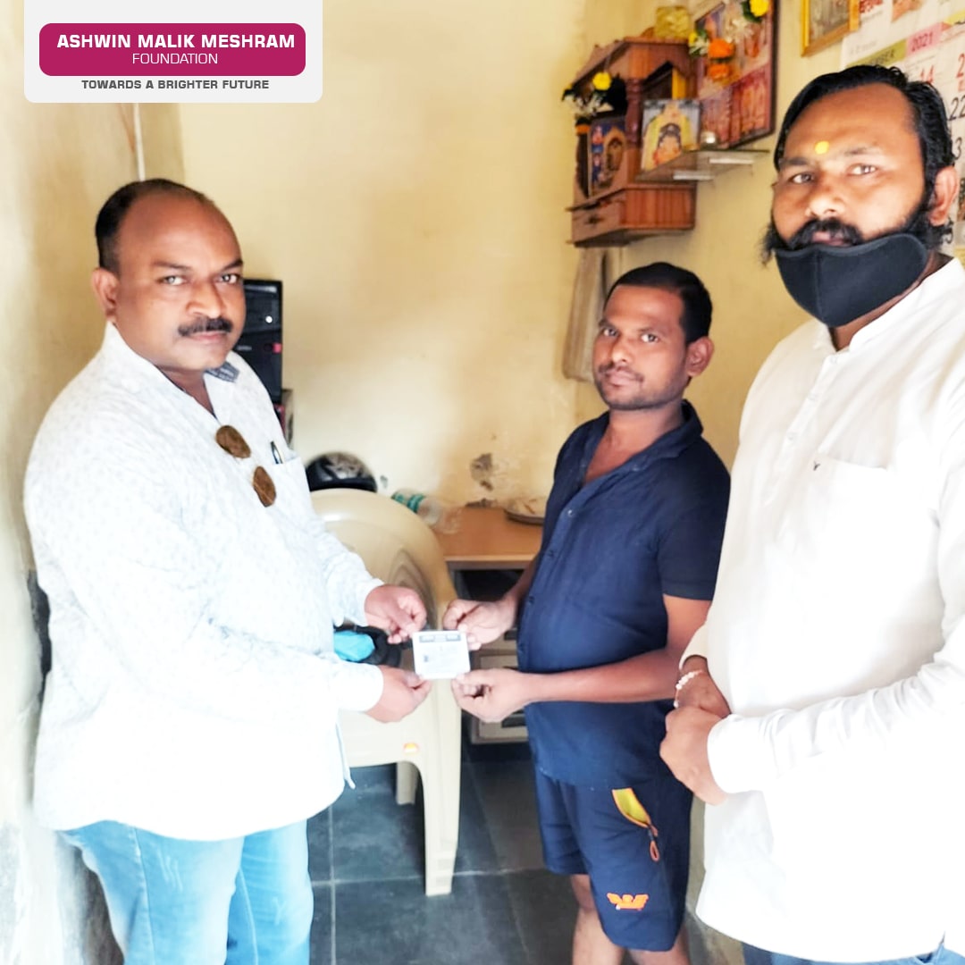 An E-Shram Yojna Drive was organised in Kurla by Ashwin Malik Meshram Foundation, in association with Raju Thorat, with the aim to benefit blue collar workers. Post successful completion of the drive, E-Shram cards with UAN (Universal Account Number) were distributed to all the beneficiaries by AMMF volunteers, which can be used to avail various government schemes and policies introduced especially for unorganized labourers. 350+ people benefitted through this drive and received E-Shram cards.