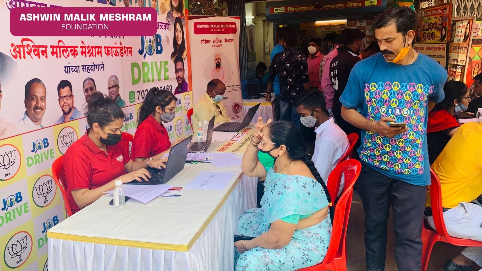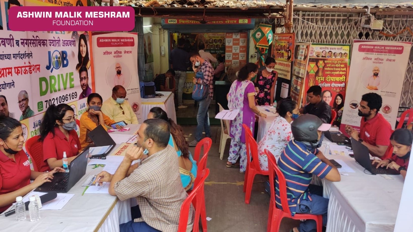 Due to the ongoing pandemic, a major chunk of the population is rendered jobless. To ensure employment amongst local households and offer them a chance at a better lifestyle, Ashwin Malik Meshram Foundation, in association with BJP MLA Parag Alavani (Vile Parle Assembly), organised an Employment Drive "GHAR GHAR ROZGAR" that helped 250+ locals find appropriate jobs for themselves, by acting as a link between candidates and employers. Also, 100+ applicants were registered under skill development program, post which they are assured for a job opportunity. Our volunteers thoroughly assessed their profiles, helped the beneficiaries understand the nature of the job prospects and assisted them to apply for various jobs as per their preferences and capabilities. A job portal has also been developed by AMMF to make the application process simpler for the beneficiaries. This portal was inaugurated and appreciated by MLA Parag Alavani. He also conveyed his best of wishes for the progress of Ashwin Malik Meshram Foundation and praised the efforts of the foundation.
