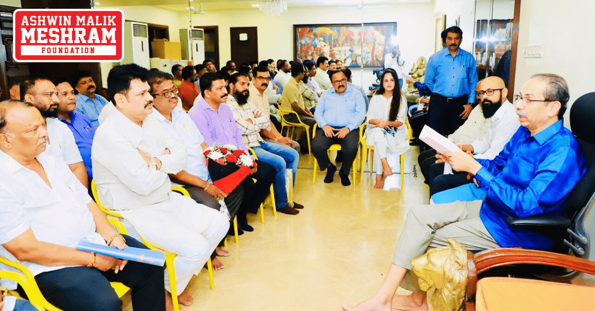 Our chairman, Mr. Ashwin Malik Meshram was invited by Shivsena (UBT) Party Chief - Shri Uddhav Balasaheb Thackeray Ji at Matoshree in presence of Shivsena (UBT) senior leader Mr. Vinayak Raut to discuss the social activities to be organised in Mumbai Metropolitan Region (MMR) in preparation for the upcoming BMC elections. The planned activities would kickstart with Chembur, Anushakti Nagar and Sion Vidhansabha and then pan out across MMR region. The Vibhag Pramukh of all the 3 Vidhansabha Mr. Pramod Shinde was also present.